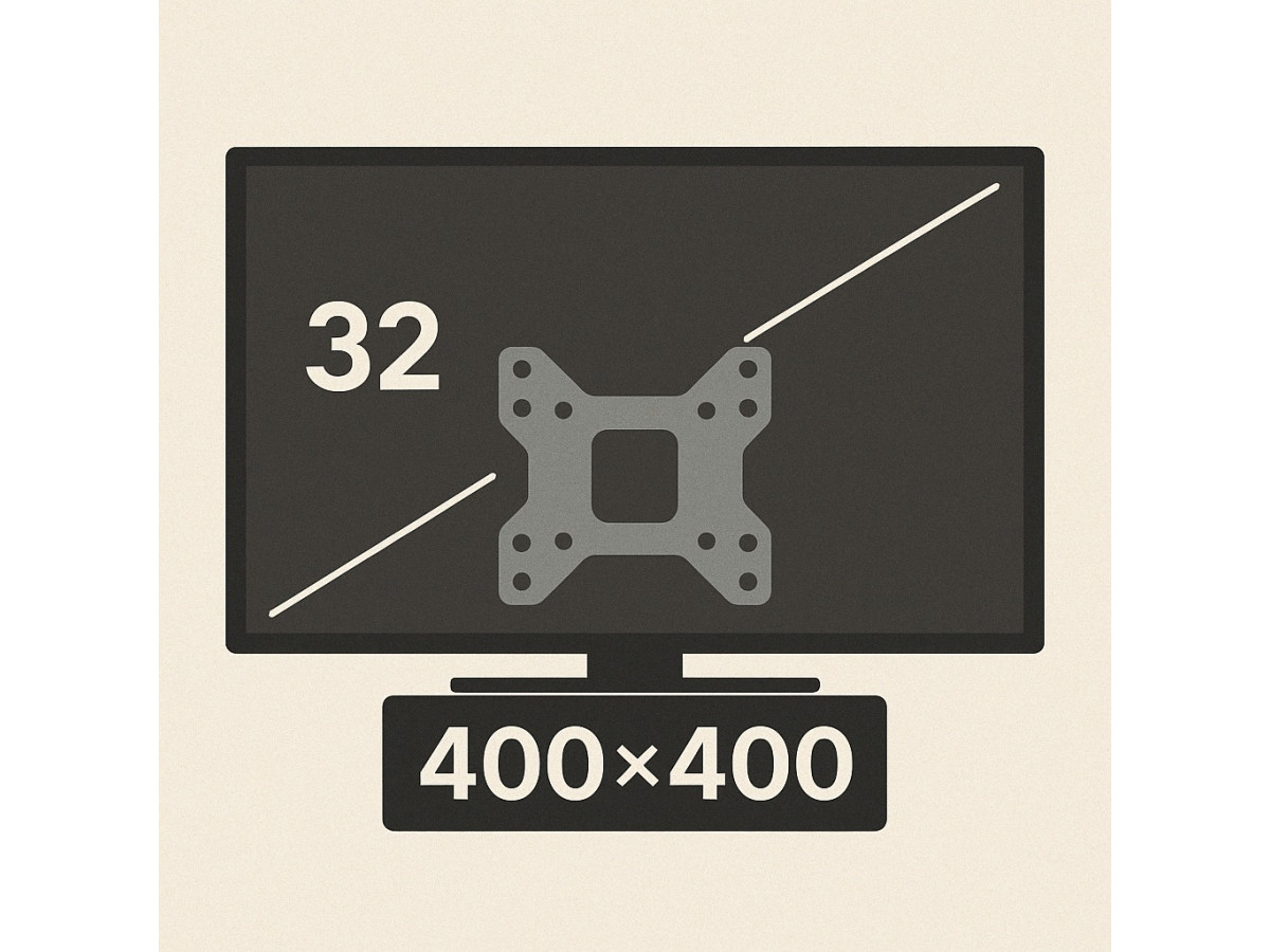 - VESA-стандарт — відстань між монтажними отворами на задній панелі телевізора (наприклад, 200x200 мм, 400x400 мм тощо);