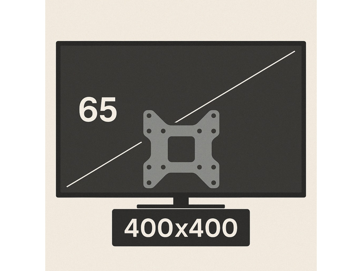 Проте з технічного погляду — навіть телевізор на 65" може бути закріплений на кронштейн, розрахований на VESA 400x400 мм, якщо вага пристрою відповідає допустимому навантаженню.