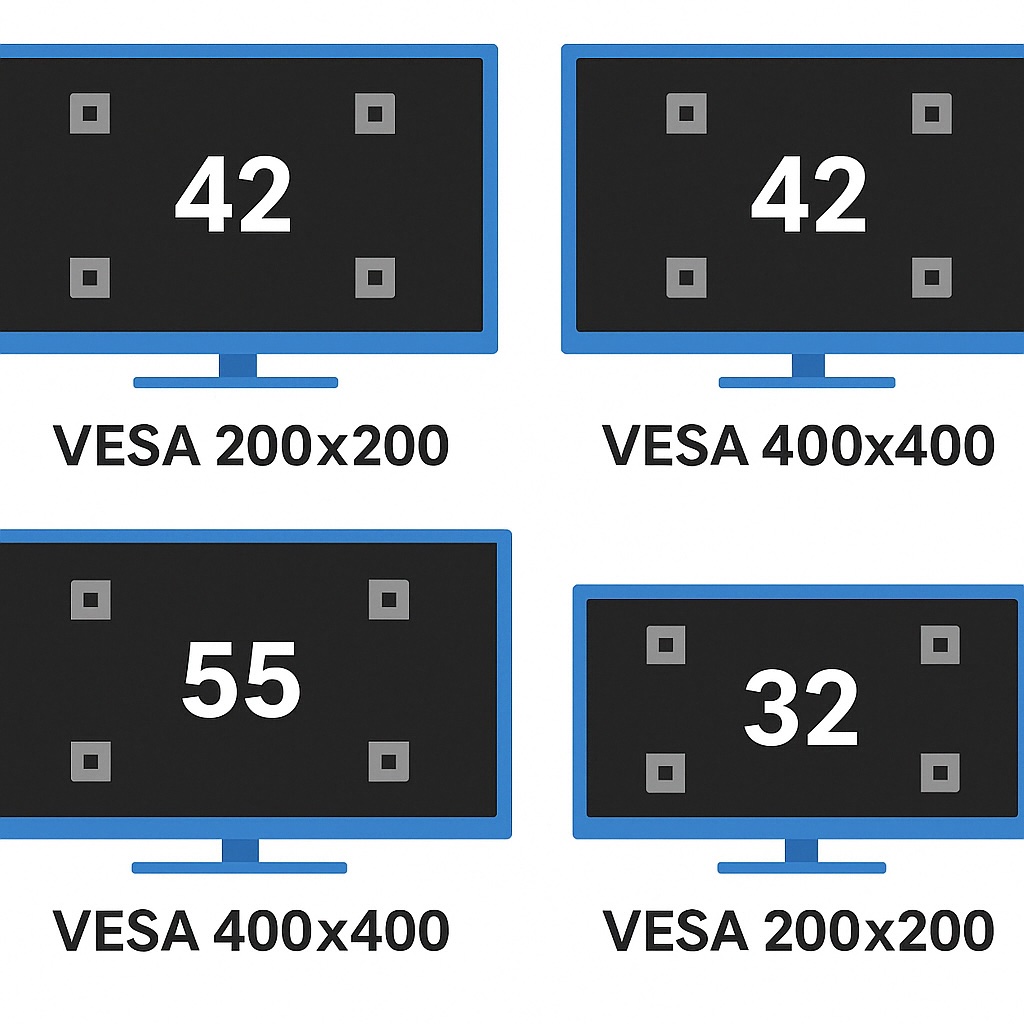 VESA можна знайти в інструкції до телевізора або виміряти самостійно — це горизонтальна та вертикальна відстань між отворами під гвинти на задній стінці.