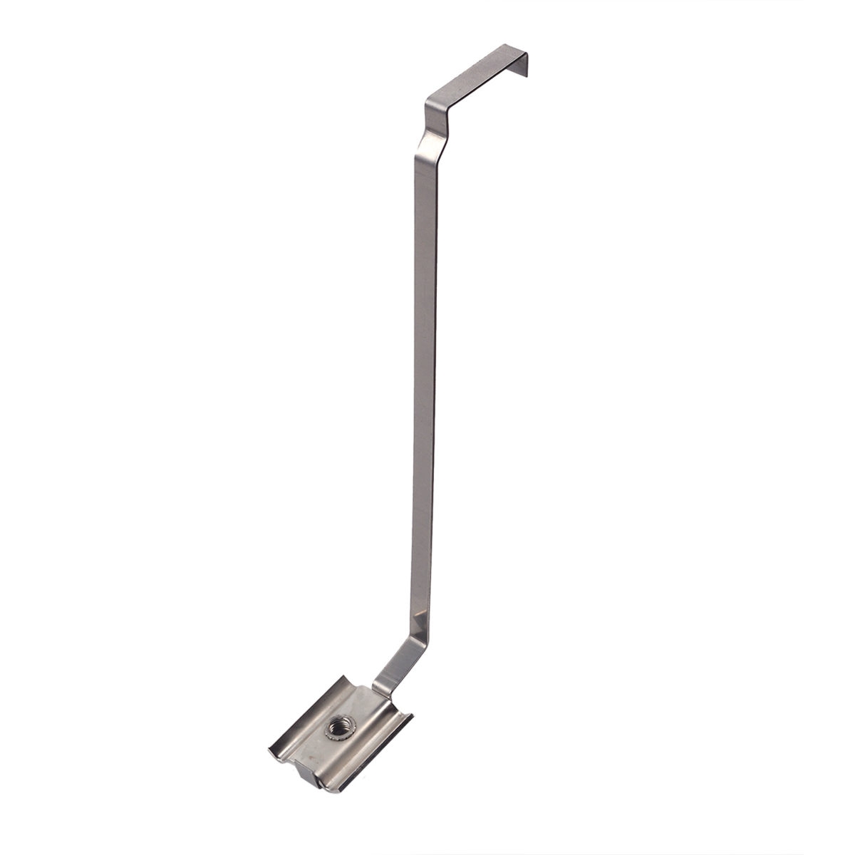Двостороннє пристосування з нержавіючої сталі для монтажу анкерів для бетонних щілинних підлог з одного боку і для пластикових щілинних підлог з іншого боку.